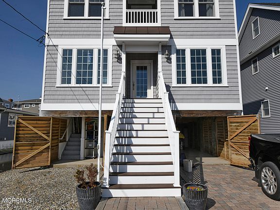 This recently renovated summer retreat sits on the lagoon, a few hundred feet from Manasquan beach. Nestled in front of Fisherman's Cove (Dog Beach) on the inlet with a picturesque setting. Open floor plan featuring a state-of-the-art Shaker cabinet kitchen with quartz countertops. This kitchen boasts top-of-the-line appliances, including a custom Bertazzoni gas range & Hood, Viking Refrigerator, and Bosch Dishwasher that opens to the dining area and family rm with gas fireplace. Den can be an additional 4th BR on 1st level. All bathrooms are tastefully updated .Oversized master bedroom w/ vaulted ceilings. Multiple balconies. Oversized Cabana with open bar area. All composite decking and adjacent floating dock. Less than a 10 minute boat ride to the ocean and local dockside restaurants. Just a bike ride away to town, inlet or local restaurants. Or take a stroll on the Paddle board for an adventure.