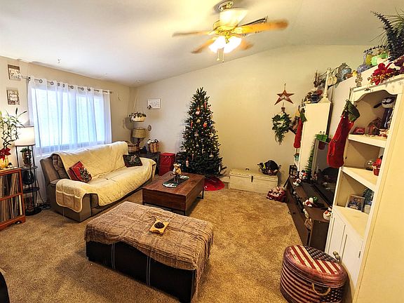 - Ceiling Fan(s), Kitchen/Dining Combo, Laminate Counters, Main Level Primary, Vaulted Ceiling(s), Window Treatments