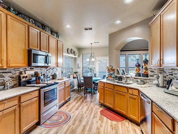 Welcome to this Spacious 5-bedroom 3 bath home. The moment you pull up in the driveway, you can see the beautiful Iron Front Door and the double seated swing. Relax and enjoy your fantastic view of the park, pool and fishing pond. Once inside, you see the Formal Dining area with large windows giving lots of light. The Master, with new ceramic tile floors, is located downstairs. The backyard is perfect for entertaining with a New Outdoor Kitchen, New Pergola, Peach Tree and gorgeous New Turf. Upstairs is 4 bedrooms and 1 Full Bath. One of the bedrooms has an attached office or craft area. Another bedroom can be used as a Theatre. So much room with so many options to fit your family needs. The location is perfection! Right across the street from the Park, Basketball Court, Pool, Walking Trail and Fishing Pond. Don't miss out on this wonderful property. Make an appointment today.