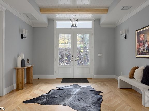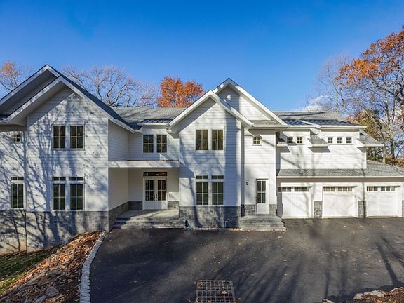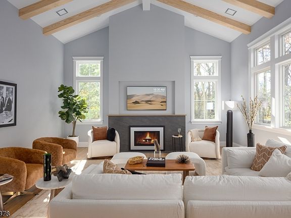 Exceptional new construction mins from NYC, offering approx. 9,600 sq ft of masterfully designed living space across 3 finished levels. Thoughtfully built to balance everyday function w/ luxury living, this home features cathedral ceilings, exposed beams, custom millwork & wide-plank white oak floors throughout. The main level centers around a light-filled open floor plan anchored by a dramatic great room w/ fireplace & 7-ft windows w/ transoms. The dream kosher kitchen stuns w/ dual 12-ft quartz islands, double sinks, double ovens, two integrated refrigerators & a custom walk-in pantry. The adjacent dining area is elevated by a showstopper wet bar. A covered outdoor living room w/ built-in kitchen, fireplace & heaters offers year-round comfort. A private en suite bedroom, formal office & a mudroom complete the main level. The second level features 5 en suite bedrooms, including a palatial primary suite w/ vaulted ceilings, gas fireplace, radiant spa bath, custom walk-in closet w/ center island & private balcony. A large laundry room w/ double washer/dryer units adds convenience. The walk-out lower level offers oversized windows, direct yard access, an en suite bedroom, half bath, multiple recreation spaces & a lounge bar w/ island seating. The 3-car garage features 12-ft ceilings ideal for lifts & two EV charger locations. Finished in Hardie board & stone w/ Pella windows, smart home systems & whole house generator, this property is designed for how you truly live.