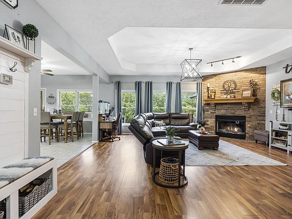 Experience the best of country living in this beautifully remodeled home on nearly 4.5 acres with stunning views. Designed with both comfort and function in mind, and located on a quiet cul-de-sac, this property is loaded with updates and extras.Outside, you'll find a 3-car attached garage (with one bay currently used as a gym, easily converted back), plus a 32x24 shop with 220v electricity. A storm shelter sits behind the shop for peace of mind. Relax on the deck completed in 2023, grill with the outdoor gas hookup, or pick fresh fruit from your own apple, plum, and pear trees.Enter into the large living room, featuring a fireplace that can accommodate wood and gas functions. The kitchen has been beautifully updated with granite countertops (2022), Viking brand double ovens, gas cooktop, soft-close cabinetry, and stainless steel appliances among other finishing touches. Bathrooms feature new tile, hardware, motion-sensor lights, and new toilets (2020). Additional updates include new vinyl flooring in 2020. Throughout you will find TONS of natural lights provided by Andersen windows. For year-round comfort, the home offers TWO A/C units and TWO furnaces--one dedicated to the kitchen and living areas and the other to all bedrooms--with the second system added in 2021. The home will also include a water softener. This property truly has it all: thoughtful updates, modern amenities, and plenty of space to enjoy the outdoors. Schedule a showing with your favorite agent today!