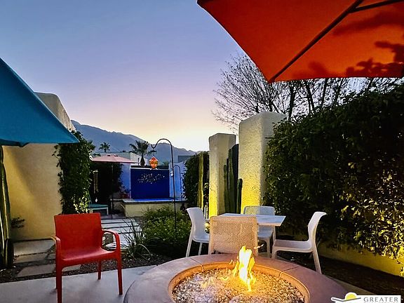 PRICE IMPROVEMENT HERE...ATTENTION AGENTS AND BUYERS....SOMEBODY IS GOING TO GET A SMOKIN DEAL ON THIS FABULOUS CONDO...WILL IT BE YOU?...You have come home to your own private gated oasis. Welcome to Greenhouse West, a lush gated community within minutes of downtown Palm Springs. A Country Club vibe with two sparkling pools, spa, gazebo, tennis/pickleball court surrounded by beautiful landscapes and spectacular mountain views. Enter your expanded and walled courtyard and entertain friends or enjoy relaxing in your private spa and chilling by the cozy fire-pit all while gazing at the incredible sunset views of San Jacinto Peak. Professionally landscaped, automatic drip system and warm up lighting make this the perfect outdoor room. If that's not enough every interior room has been beautifully updated. Gallery stainless appliances; wine fridge; quartz waterfall peninsula; Porcellanato Italian tile; Ove, Koehler and Moen bathroom fixtures; Hinkley lighting; Carrier HVAC. Your home. Your perfect Palm Springs lifestyle. PLEASE NOTE seller has their replacement home under escrow which is why they have done a major reduction in price. THIS IS A DEAL FOR A SAVVY BUYER!