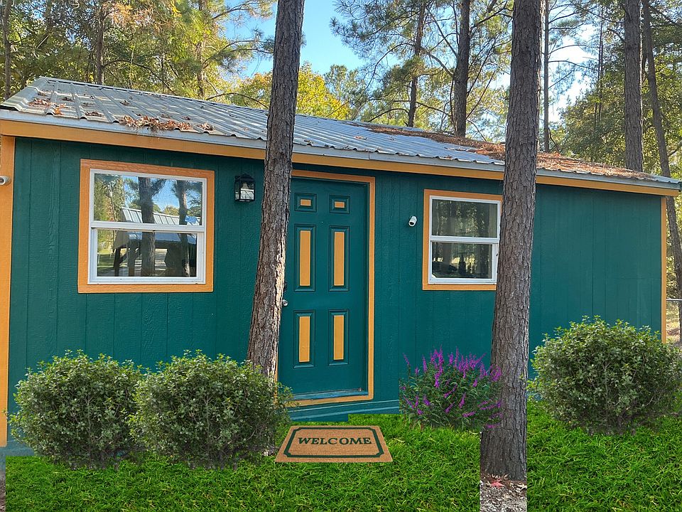 Just finished and ready to rent. One bedroom with a loft. Cabin D has windows galore overlooking the creek and 5 acres. High ceilings. Cool farmhouse vibe.