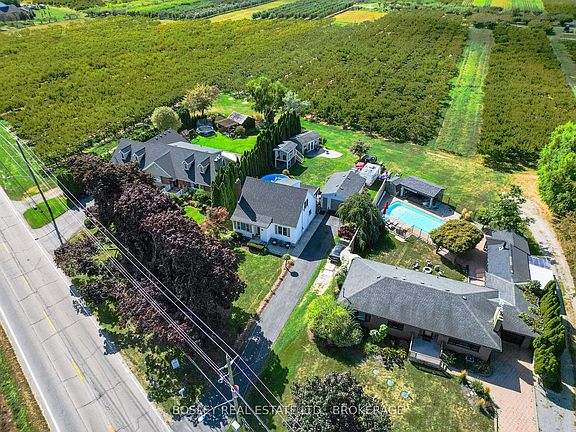 The best of both worlds rings true here! A dream location, a stunning setting, quiet mornings and peaceful nights. With a St.Catharines address, but pure NOTL vibes, this charming home is the setting for your next chapter. Step back in time with this storybook 1949-built home, full of character and warmth, set on a generous lot with a tranquil backyard, and located just over the canal. Offering 1,279 sq. ft. of inviting living space, this well-appointed and renovated home is ready for you. Inside, you'll find a comfortable layout filled with light and timeless charm. The main floor offers a bright and welcoming living space, perfect for family gatherings or curling up with a good book. There is a main floor primary and updated 4 piece bathroom, and streamlined kitchen with custom cabinetry granite counter-tops, separate dining and living areas and views through to your serene backyard. Upstairs, the half-story provides the perfect spot for two good sized bedrooms with great closet space...and of course another vantage point to enjoy views over the orchard. The fully finished basement has a gas fireplace, brand new flooring, laundry area, office space and plenty of storage and pantry space. But it's the outdoors that will truly capture your heart. The spacious backyard on its 76ftx166ft lot is a great find whether you dream of summer barbecues, kids running and playing, or quiet evenings under the stars, this private green space is where memories will be made. A covered porch with plenty of room to entertain overlooks the pool, hot tub, chicken coop/playhouse, and oversized shed with stamped concrete patio area. There is also a 1.5 garage with 100amp for all your toys, storage, or workshop goals. All of this is tucked into the edge of St.Catharines, but bordering NOTL known for its scenic beauty, award-winning wineries, and charming Old Town. Here, life moves at just the right pace, with everything you need only minutes away. Come for a look, and stay for life.