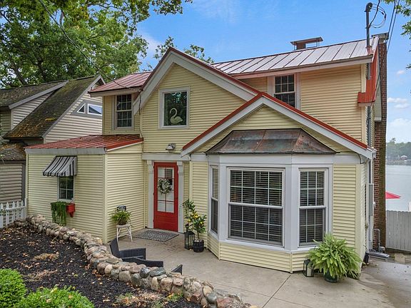 Welcome to Sylvan Lake with skiing from dawn to dusk! Come make your own special memories in this year-round home which features 4 bedrooms, 2.5 baths, 2 living areas, 39x35 outdoor patio living space designed to enjoy the waterfront, 35x9 roadside patio with the rock and new landscape. The master bedroom is on the main, plus recently renovated & full bath with new infrared sauna on main level. The main level kitchenette, perfect place to grab your morning coffee or beverage from the mini fridge. Additional 3 bedrooms and renovated full bath on upper level. Additional 1/2 bath on lower level. NEW Bosch stainless kitchen appliances and GE washer/dryer in 2022. Professional landscaping roadside and easy to maintain patio lakeside is complete with white picket fence. Loaded with charm and character like built-ins, wood ceilings and floors, 2 fireplaces, and walk-in pantry/cellar. This home is located on Sylvan Lake’s first basin, which is spring-fed with a sandy rock bottom. The home’s lake front offers shallow areas for wading and is deep enough to jump off the end of the two Brock Docks (included in asking price). Home has Full house Generac generator in 2020. Newer Metal roof, furnace, central air, fireplace inserts. The famous Sylvan Lake sunsets are enjoyed from your patio. Nearby amenities include Sylvan Cellars, Sundaes on Sylvan, and the Fishing Line Trail. This home gives you that cottage look! Attached in disclosures is a list of items for sale including Pontoon and Lift..