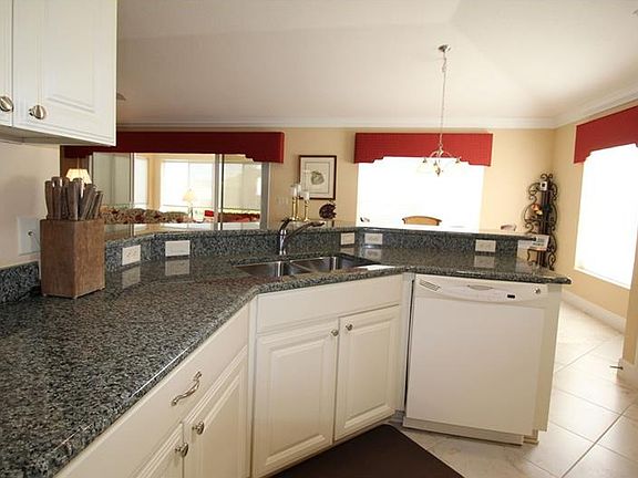 BOND PAID! NO HOME BEHIND! Pristine condition inside and out! This Lantana is located in the VILLAGE of MALLORY SQUARE and should be on the top of your list to view. This home has large tile laid on the diagonal in all rooms with the exception of bedrooms which are carpeted. The kitchen is enhanced with cream cabinets of different heights and one with GLASS panels to display your treasures. Counter tops are granite and solar tubes allow for natural light. Crown molding decorates the main living area and sliders lead to the enclosed lanai with heat and air. Step outside to recover from your active day in the in-ground hot tub. Life is good. The master bedroom has a Volume ceiling, the master bath has a large walk-in closet with shelving, WALK-IN SHOWER, dual sinks and a separate toilet room. The CORNICE window treatments as well as blinds are custom designed and provide privacy as well a decorative balance. The dining room has a full mirrored wall that enlarges the appearance of the home. The garage is stretched and the floor is painted and sealed to minimize clean-up. Curb appeal is impeccable as this home has been freshly painted inside and out. Most furnishing may be purchased as well as the electric golf cart.