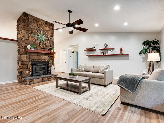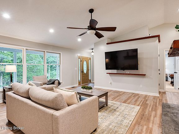 Welcome to your dream home at 468 Wilderness Rd, nestled in the charming community of Brooks, KY. This stunning 3 bedroom, 3 bathroom ranch-style home boasts a warm and cozy ambiance with a modern twist. As you step in through the front door, you'll be greeted by a wonderful Great Room featuring a fireplace and vaulted ceilings, perfect for cozy evenings with loved ones. The open split floor plan allows for seamless flow throughout the main floor, with 3 bedrooms conveniently located on the main floor as well. The primary bedroom, located on the main floor, offers the ultimate level of privacy and relaxation with its own ensuite full bathroom and large walk-in closet. You'll love the modern and practical touches throughout the home, such as the LVP flooring on most of the main floor and the 106 square foot storm shelter conveniently located under the porch. The spacious eat-in kitchen is a chef's dream, featuring a double oven and plenty of counter space for meal prep. But that's not all, this home has so much more to offer. With a total of 3140 square feet, there's plenty of room for all your needs. The basement includes 3 additional rooms that can be utilized for any purpose, such as a home office, gym, or playroom. The basement living room also has built-in surround sound with premium speakers for the ultimate movie night experience. There is even a Kitchenette in the basement making movie night refreshments, all the more convenient. This home is not only aesthetically pleasing but also technologically advanced. It features wired ethernet with a battery backup, a smart water heater connected to the internet with a drain to the outside. The new roof was installed in 2019, and there's even a water-powered backup sump pump with a smart alarm with email/text notification to the homeowner. The heat pump,blower, and compressor are all smart systems connected to the internet and take weather into account, making your home more energy-efficient. The garage is a side entry and has space for 2 cars, providing plenty of room for your vehicles and storage needs. The yard is a perfect size for outdoor activities, the spacious deck is great for entertaining. The outbuilding, equipped with an HVAC mini-split unit and wood stove, is ideal for additional storage or a workshop. Don't miss your chance to make this gem your own. With an attractive price of $475,000 and sitting on 1.9 acres of land, this home won't stay on the market for long. Come and experience the best of both worlds at 468 Wilderness Rd, where modern amenities meet the peacefulness of country living. Schedule your tour today and make this house your new home
