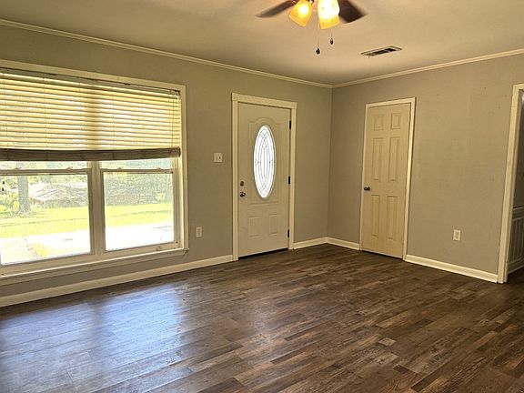 LOOKING FOR A HOUSE WITH A FEW ACRES. THIS COULD BE IT. This all electric home has 3 bedrooms & two baths with an open floorplan. The kitchen has double ovens and wood countertops. Fresh interior paint & some new floors. Baths have granite countertops. Other amenities are ceiling fans, window blinds, metal roof & central heat/air. Enjoy sitting on the back covered patio overlooking 3 +/- acres, complete with an outdoor grilling area with a built in eating bar topped with granite. The garage has been enclosed & would make a nice gameroom, office or exercise room or could be opened back up to use as a garage. Sold "as is". Call listing agent for more information. None