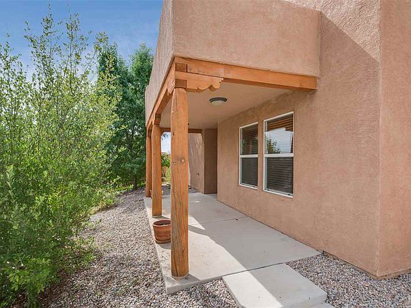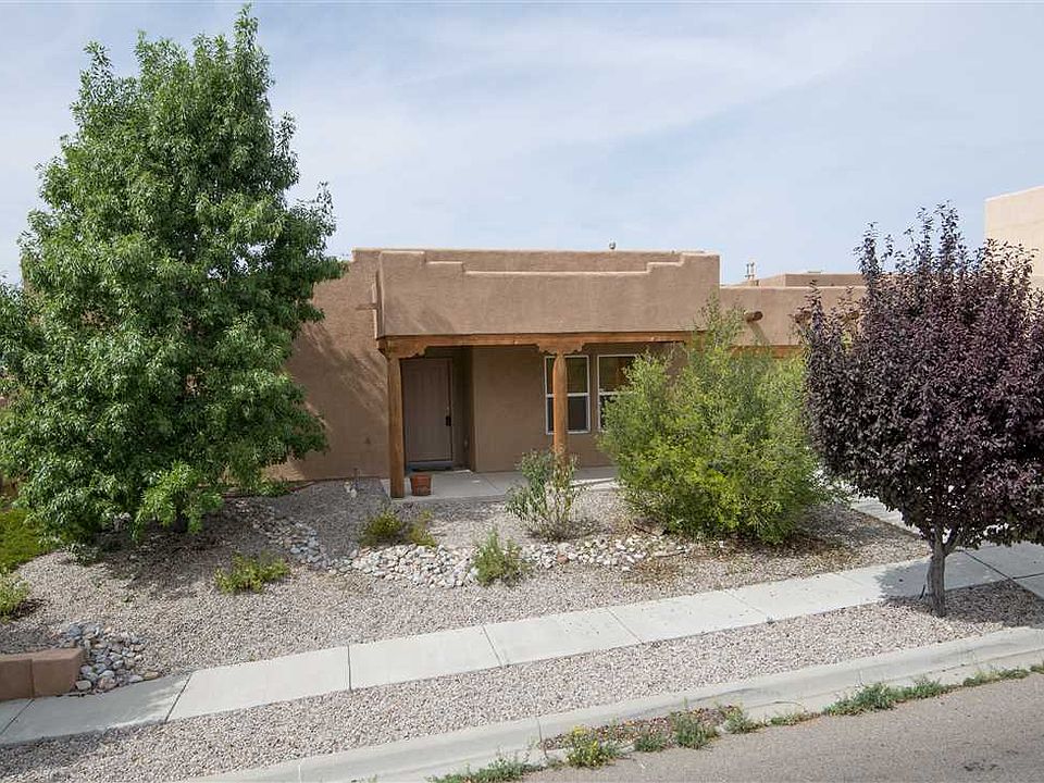 Refreshing and easy to live in this open concept single level home. The perfect size to shelter you while you enjoy the activities of your life. The Santa Fe features include a high ceiling and vigas. Enjoy the no fuss no muss gas fireplace on a cool winter night, or summer afternoons in a cute xeriscaped yard. Prepare a gourmet meal for guests or a simple dinner in this delightful sunny kitchen. Easy access to community amenities, walking trails, shopping or a 15 minute drive to downtown Santa Fe. This well kept home is a great value.