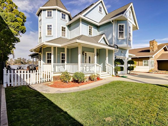 Nestled in the esteemed community of Discovery Bay this custom built rare Victorian is the perfect example of outstanding craftsmanship! Meticulously detailed features are found throughout this impeccable design on a HUGE lot with one of a kind view. Original owner/builder was an Architect. Marvelous chef's kitchen with expansive granite counter tops with bar stool seating open to the living area and dining room with large windows for beautiful views of the river. Master retreat features generous bathroom with over-sized tub and separate shower stall, walk-in closet, and private second floor balcony with elevated panoramic views. Downstairs den/office. Spacious backyard entertaining space boasts custom concrete deck that wraps around the side of the property with outdoor access to the full downstairs bathroom. Fully owned solar. Water location is fantastic with direct access to open waters. It doesn't get any closer to the action! Welcome to your dream home!