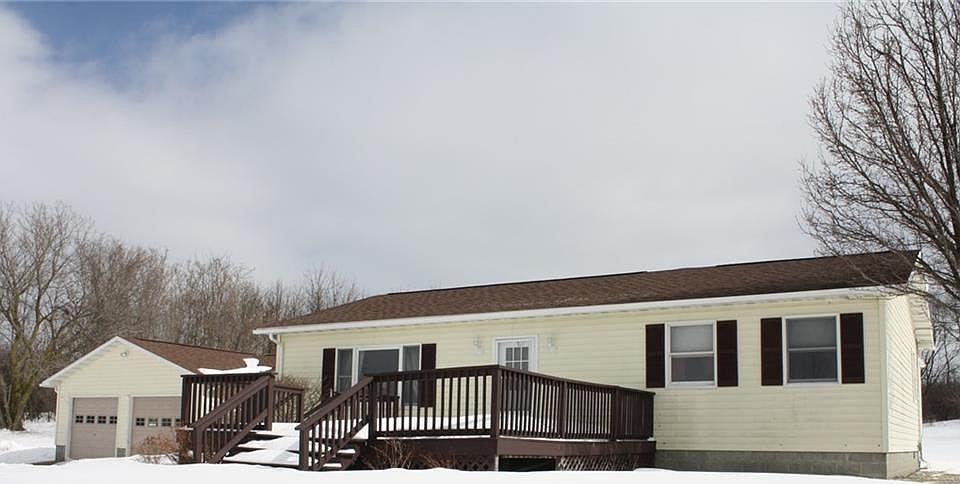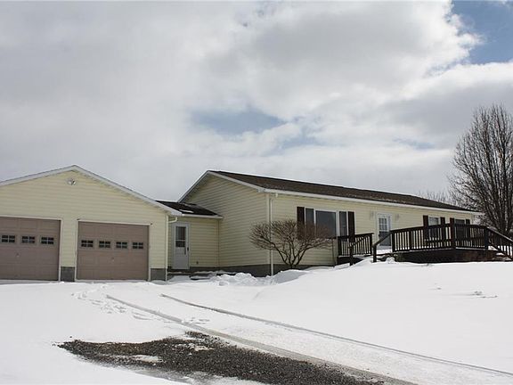This extremely clean, modern ranch is situated on a large lot with over 1.5 acres and has two large decks. Beautiful french doors lead to the possible in-law quarters that has a living room and a bedroom with an on-suite full bath. The huge, bright, eat-in kitchen is open to the dining and family rooms which makes this a perfect home for entertaining! The kitchen has lots of counter space and a pantry. The first floor laundry is conveniently located near the kitchen. The large picture window in the family room brings in natural light and overlooks the large front deck. The back deck overlooks a beautiful large back yard. Oversized two car garage. Convenient location to the Village of Geneseo and Route 390. Call today for an easy showing.