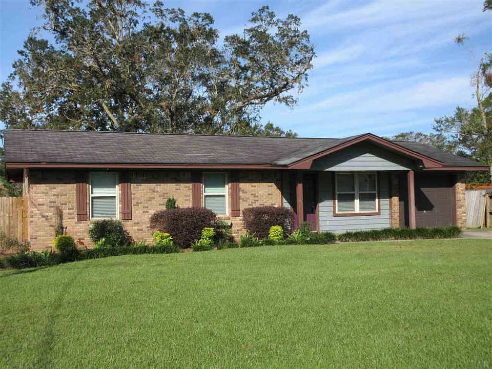 Big Ticket Items have Already Been Replaced: New Roof going on before closing. Within the last 4 years Central Heat & Air, Vinyl Double Pane Windows, Exterior Doors, Garage Door & most lights all have been replaced. Rebuild NWF brought the home up to todays building codes so insurance is very reasonable. Large Corner, privacy fenced yard was a master landscapers canvas. You will love the fruit and flowers. 26' Patio is perfect for outdoor BBQ's and family gatherings. Huge concrete pad is for a future shop or extra parking. Inside was just painted. Kitchen features 17 wood cabinets, 5 drawers, sink under window with high faucet, flat top stove & stainless steel refrigerator, dishwasher. All bedrooms have Large or walk in closets, TV outlets up high for wall mounts. Baths have been updated. Master bath is only a half bath but room to add a walk in tile shower (around $5,000). All this in a quite area minutes to Pensacola and the best A rated schools makes this a must see home.