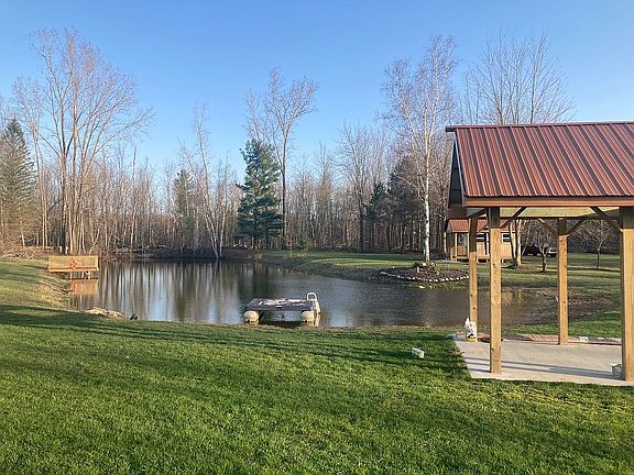 Beautiful home nestled in the center of 20 acres. This home boasts hardwood Acacia floors, stonework fireplace, stainless steel appliances, stain glass light fixtures and lots of windows. Outside relax on the large back deck overlooking the pond or on the cabin porch out back. There is a greenhouse and hip barn for your hobbies!