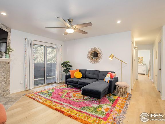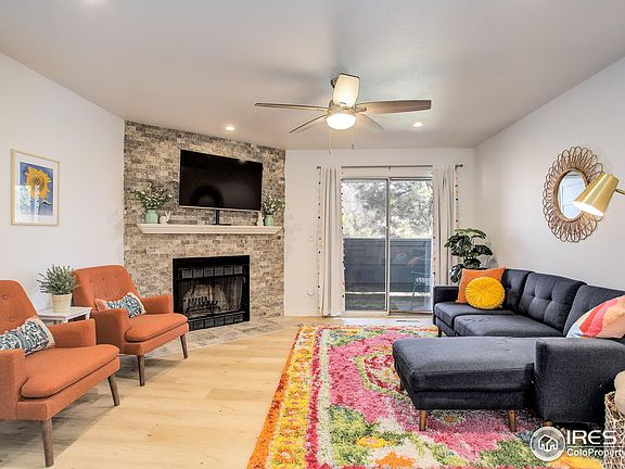 Perched on the top floor in the serene Hunter Creek, this condo has been completely updated with the utmost attention to detail and the finest fixtures and finishes. You will be WOW'd upon entry at the bright and inviting space. Boasting new lighting, wood floors, & an eye-catching fireplace makes a luxurious living room. The kitchen is outfitted with new stainless steel appliances, quartz countertops, and a gorgeous tiled backsplash. The primary suite is spacious & bright with walk-in closet and ensuite bath. Secondary bedroom offers access to the extended covered deck. Quiet ceiling fans adorn each room. You will love the convenient access to the adjacent park. Amenities galore: covered parking, 3 deeded parking spots, pool, tennis, fitness center & clubhouse. Unbeatable location & easy maintenance, perfect for the Boulder lifestyle!