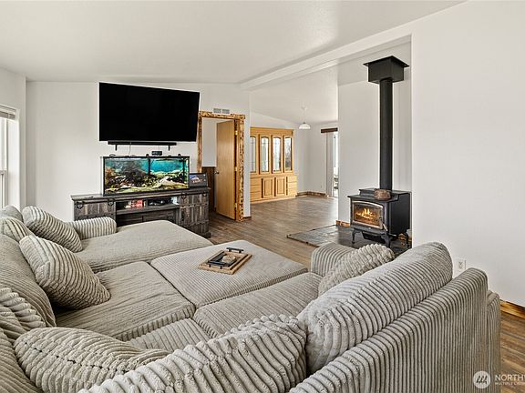 Country living at its finest in Ellensburg! This 1,809 sq ft home sits on 15.31 beautiful acres north of town with KRD irrigation (6 acres) and is fully fenced for horses with established shelters already in place. Enjoy sweeping views of the Kittitas Valley and surrounding mountains, along with unforgettable Ellensburg sunrises and sunsets right from your own property. Inside, you’ll find fresh interior paint and brand-new flooring throughout, creating a clean and inviting feel. The spacious living room features a cozy wood stove, perfect for chilly evenings, while the generous dining area easily accommodates large gatherings. A sliding glass door fills the home with natural light and connects you to the outdoors. The large kitchen offers abundant counter space and cabinetry, with appliances included. The primary suite features a double wall closet and a private full bathroom complete with a relaxing soaking tub and separate walk-in shower. Two additional bedrooms, a full bath, and a conveniently located laundry room offer functional everyday living. An additional flex room provides endless possibilities — home office, guest room, hobby space, or workout area. Outside, the 35x36 shop is ideal for vehicles, equipment, or projects — the perfect complement to Ellensburg country living. A rare opportunity for acreage, irrigation, horse setup, shop space, and panoramic views — all just minutes from town.
