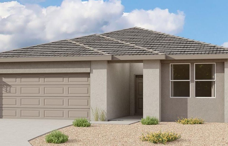 Introducing the Sage floorplan, featuring a modern desert exterior, 3 car tandem garage, 4 bedrooms, flexible den area, and 3 bathrooms at 2,150 sq ft. The open-concept kitchen features the designer Timeless Collection. It offers 42'' upper white shaker cabinets, quartz countertops, backsplash, and satin nickel hardware. This home feels large with 9-foot ceilings and the 4-panel center glass slider off the great room. The Sage also includes front yard landscaping and an 8-foot double gate to your backyard. Washer/dryer, fridge and blinds are also included for easy move-in! The Amarillo Creek community is conveniently located near Route 347 for easy commuting to Phoenix, Chandler, and Mesa. Just minutes away from an array of dining, shopping, and entertainment options that Maricopa has to offer.