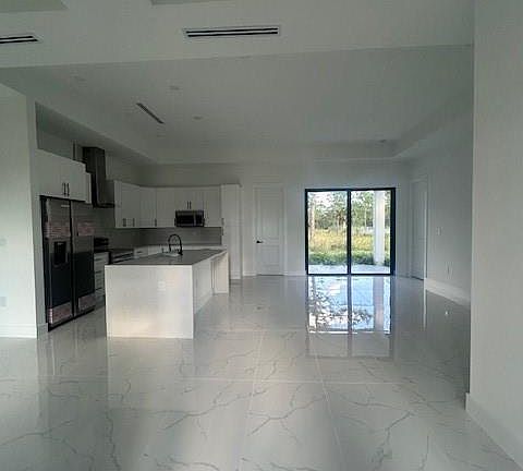 Quartz counter topsLarge covered terraceCozy floor planOpen modern kitchenStainless steel appliancesPaved drivewaySprinkler system