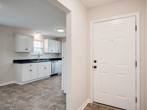 Primary bedroom with neutral walls and carpet, ceiling fan, and oversized closet. Primary bathroom with large vanity and tub/shower combination. Bedroom 2 has neutral walls and carpet , ceiling fan, and double closet. Laundry room with custom ship lap walls and built-in storage. Flat, privacy fenced backyard that backs up to woods. Outside storage building remains. New HVAC July 2023; Roof is approximately 5 years young: Water Heater approximately 3 years. Located close to schools, restaurants, shopping, and FT. Eisenhower.