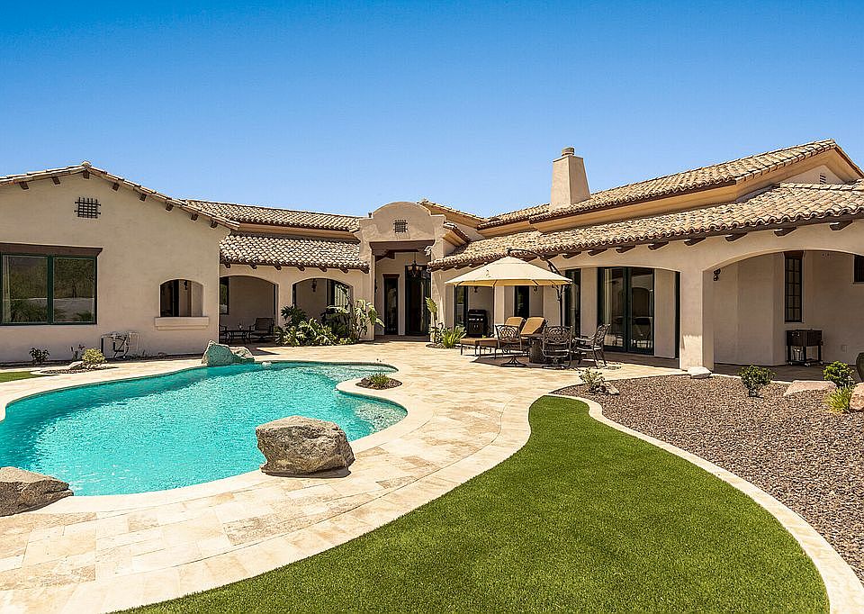 Buyers Agents Welcome Call For Details Amazing mountain views! Beautiful, well maintained custom home. Split floor plan with 3.5 baths, 4 bedrooms and a 5th flex room that can be used as an office, family room, or a 2nd master suite w/ full bathroom, fireplace and courtyard access. Bedrooms 2 & 3 feature a Jack & Jill bathroom each with private vanities and walk-in closets. Home was tastefully remodeled in 2020 and has a bright and open feel with modern designer updates. Parking: 3+ car extended garage with room for golf cart and toys! Extended pavered driveway with additional parking. This exquisite home is situated on 1.52 acres, with no HOA and plenty of room to build garage/shop, park RV/Toys, Horses etc. Resort inspired yard complete with natural gas fireplace, Travertine pavers, wrap around porch with detailed wood beam ceilings and a beautiful sparkling pool with tranquil waterfall. Outstanding views of the Superstition mountains in every direction. Tons of home upgrades: - Owned solar panels - High end Klipsch whole house speaker system with surround sound - Owned Vivant security system - Solar powered security cameras - Smart thermostats with remote access - Central Vac system - Soft water system - Instant hot water throughout home - Designer walk in showers - Heated Master shower - Built-in Fireproof wall safe - Drip irrigation watering system - Brick paved driveway - Travertine pavers pool area - Natural gas fireplaces, 2 inside 1 outside - Artificial turf - Utility sink in garage - Upgraded oil rubbed bronze faucets throughout home - Upgraded lighting throughout home - Custom plasma cut iron entry door with matching courtyard gate - 8' Knotty Alder wood interior doors - Custom wood beams in living areas - Upgraded Anderson windows and doors - Private patio doors in virtually every room - Custom built-in entertainment/TV niche - Pull-out waste bins - Pull-out tray drawers in all kitch cabinets - Knotty alder cabinets - Granite countertops throughout - Pot filler at stove - Dacor commercial grade double oven - Huge Laundry room with Alder cabinets, granite counters, built-in ironing board Buyer to verify all facts/figures