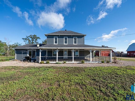 Truly a rare find—1906 homestead! This five-bedroom home (primary on the main floor) with a two-stall detached garage proudly sits on 10.65 acres! New roof, siding, HVAC systems, and most windows! Enjoy the serene beauty from your wraparound covered front porch. Plenty of room for all your toys and animals with the 36x54 pole barn. The 32x43 barn with hayloft featuring an updated metal roof and has proudly withstood the test of time! A Large 26x47 corn crib plus a 12x20 chickencoop/storage shed. Over 2,400 finished square feet of space in this home. The main floor also hosts a formal dining area, living room, and family room with a gas fireplace, all with access to the covered front porch. The large main-floor primary bedroom includes a walk-in closet and a spacious bathroom with double vanity, shower, and tub. Main-floor laundry and mudroom are just an added features! Easy access to I-29 and all surrounding communities! Enjoy today and add your personal touches. Get your animals and yourself settled before winter! All on rural utilities too!