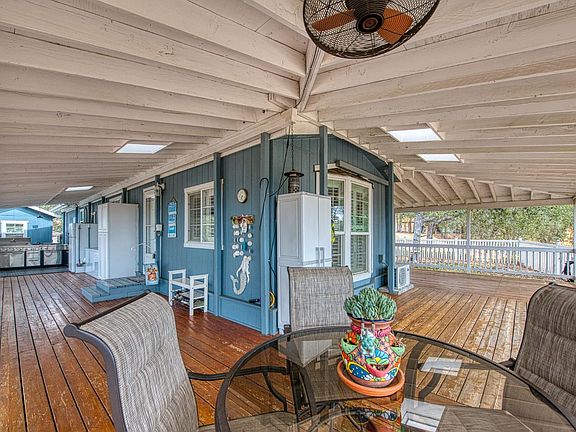 Nestled in the serene foothills of Coarsegold, this recently updated 2 bedroom, 1 bathroom manufactured home offer approx 1,000 sq ft of living space and many outbuildings currently used as an office, gym, bar an entertaining lounge, storage and a workshop! Property also has a chicken coop and greenhouse! Located on 2.37 acres the property features a bonus room, wrap-around porchs, with new railings, fire pit, fruit trees, raised garden beds, and a generator for back up. Enjoy the amazing views while having a fence for privacy. Recent upgrades include double-pane windows, remote controlled gate and a modernized kitchen with updated cabinets and appliances. Enjoy the tranquility and privacy of this secluded mount retreat with mountain views and ample activities. This property has so much to offer. Special financing options are available to make this dream property yours !