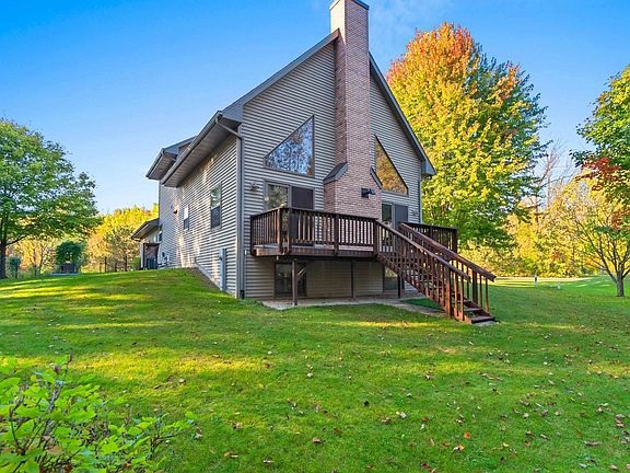 Tucked away on 2.79 wooded acres, this one-owner custom home feels like a private retreat. Inside, soaring 25’ vaulted ceilings provide a grand sense of space, while a loft invites hobbies, work, or quiet reading. Maple cabinets and trim reflect true quality craftsmanship, and a pellet stove adds cozy cabin warmth. Large windows showcase wooded scenery, changing beautifully with each season. The basement offers tremendous potential, ready to finish for added living space. Outside, the spacious deck places you in the heart of nature, with a firepit, pond and an abundance of trees creating natural serenity. Carefully maintained, this home is ready for its next chapter. Seller is requesting 3 days of post occupancy. Please allow 48 hrs for binding acceptance.