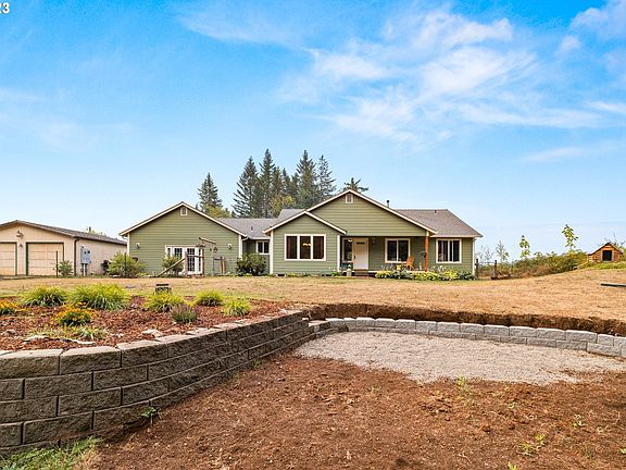 If you are looking to get away from it all, this could be your next home! Set on 6.46 peaceful, level acres in the desirable George area of Estacada. Home is one level with 2,916 sqft. and was built with in-law quarters. 3 bedrooms plus a den/office in main area of the home. Living room with vaulted ceiling features a wood burning stove and picture window. Open kitchen with vaulted ceilings, pantry and eat bar. Formal dining room with view of front pasture. Third bedroom with new laminate floor. Large primary bedroom with walk-in closet, bathroom with double sinks, soak tub and walk-in shower. Utility room with 1/2 bath. Attached garage area was built to be in-law quarters with exterior French doors and wired for generator - features pellet stove heat and sink area. Bring your animals, the property is fenced and cross fenced! Some marketable timber on property, can also be used for your wood heat. Outbuildings include a 24x24 shop with concrete floor, a detached double car garage and a 12x16 Tuff Shed. There is also a 20x20 greenhouse area, great for growing, seller has grown watermelons in the greenhouse! Newer well pump and outdoor hand pump. If peace and quiet is what you are looking for, this home and property offer just that. Borders with forest land. Could easily be fitted for off-grid living; pastures for animals and/or farming; generator ready, plus a creek, it's all here. This property has so much to offer, make an appointment and come take a look!