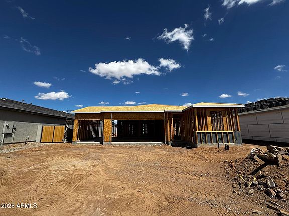 Welcome to the Poppy! Boasting 2,072 sq ft, 4 bedrooms + Den, 3 baths; this home offers a versatile floor plan perfect for any buyer. Enjoy 9 ft ceilings, wood-look tile in main areas, carpet in bedrooms, and 3 car garage. The spacious kitchen features the Artisan Collection with 42'' upper grey cabinets, quartz countertops, tiled backsplash, and hardware. The great room has a 4-panel glass slider that opens to a covered patio. The Den can be a office, play room, or additional living area. GE washer/dryer, fridge, and blinds also included! The Amarillo Creek community offers parks, pickleball court, basketball, and is conveniently located near Route 347 for easy commuting to Phoenix. Minutes from dining, shopping, and all the entertainment that Maricopa has to offer.