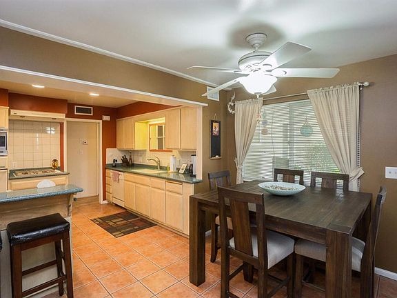 Spotless 3/2, close to shopping, and beautifully updated. Hardwood floors, new carpet in the bedrooms, and updated windows. The kitchen has been updated, and has solid surface counter tops, a gas stove, and is open to the dining area. There is plenty of storage, an indoor laundry, and both bathrooms have been updated as well. In the back yard there is a beautiful covered patio, and a partially fenced garden area. Seller states that the HVAC is approximately 6 years old.