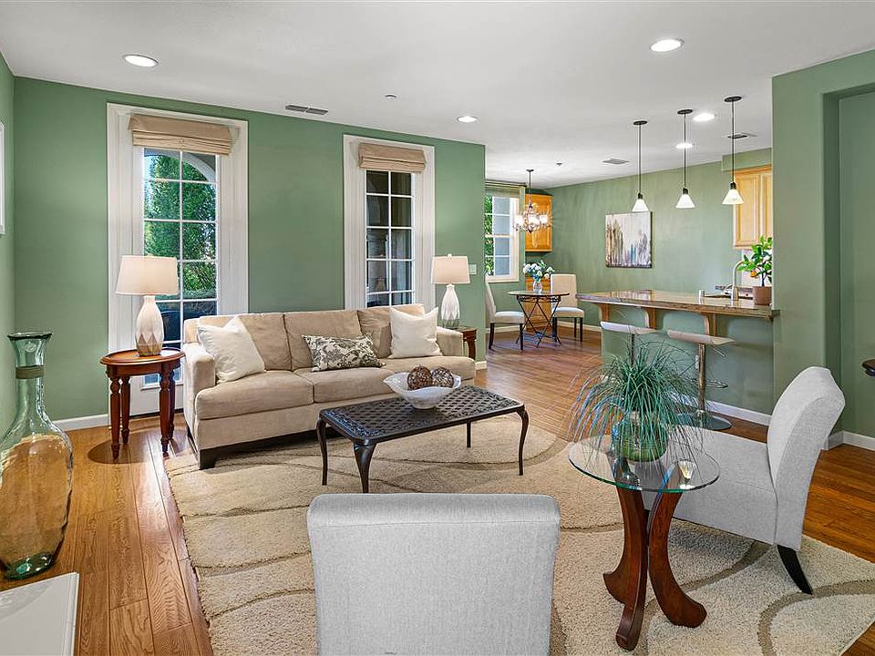 Amazing Location in Dublin Ranch! This is the home you have been waiting for with 2 bedrooms and 2 full baths - End single story unit at the front of the complex and features an attached 2 car tandem garage. Inviting entry with flagstone patio and glass entry door. Step into an open floorplan with 10 foot ceilings, recessed lighting, beautiful wood engineered flooring. The living room features lots of windows with custom window coverings and fireplace. Bright and open floorplan with dining room with custom cabinets and a door leading to a private outside patio. The kitchen features a breakfast bar, granite countertop, upgraded natural wood cabinets and built in appliances, including stainless steel refrigerator. The generous size bedrooms have large closets, recessed lighting and windows with custom window coverings. This home features 2 upgraded bathrooms and a laundry room. This home is all on one story and is highly sought after floorplan. Don't miss it!!!