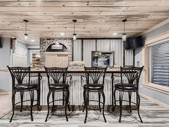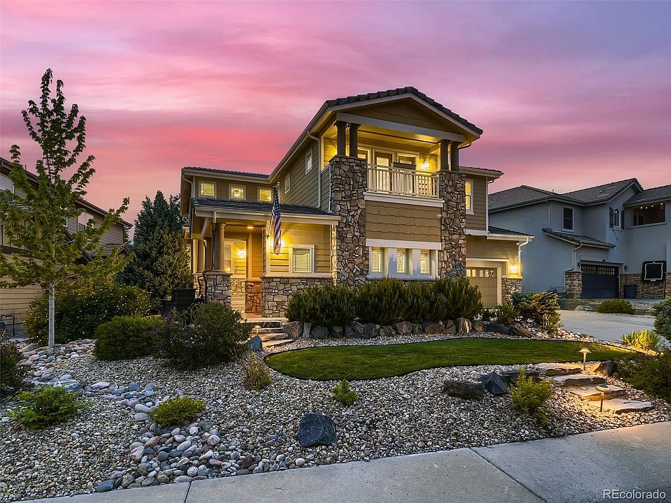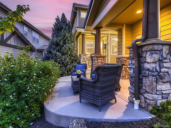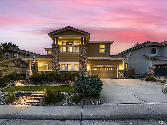 Welcome home, to the highly sought-after Firelight neighborhood of Highlands Ranch! This place wows you from the moment you see it, with its landscape lighting, tile roof, new sod, app controlled sprinklers. Experience the open floor plan, with newer hardwood flooring & Karastan carpet, where every room is flooded with natural light. You have a formal living room for entertaining and a family room for relaxing together. This room features an incredible, custom rock wall, custom solid wood beams, and built-in speakers. Your beautiful kitchen has a large island, a built-in cooktop range & all-new stainless steel appliances; even a charming breakfast nook. The first bedroom is on the main level, with five more bedrooms awaiting you upstairs. The spacious, primary bedroom has a walk-in closet, & a dreamy five-piece ensuite bath. But the crowning glory is its private balcony. Two of the other bedrooms also have their own personal baths & the next two share a Jack & Jill bathroom between them. Downstairs, you have a fully finished basement, customly created with unlimited fun in mind! You have a brick wine & liquor bar with a 3 inch Beetle Kill custom bar top with live edge that has its own Scotsman famous “chewy ice” machine and refrigerator. The entertaining area has custom beams with surround sound speakers in your tongue & groove Beetle Kill ceiling. There’s an additional bedroom with barnwood wall and bath. To top it all off you have a six-seater home movie theater waiting behind a custom barn door; there’s surround sound, plus a projector, projector screens & a little ‘movie bar’ with its own refrigerator and granite countertop. Your 3 car garage has an epoxy coated floor, suspended racking system in both garages for amazing storage space and app-controlled garage door openers. You’ll be delighted by the backyard’s fully fenced, private, outdoor living space. The covered, stamped concrete patio is big enough for the whole party, with newly designed landscaping.