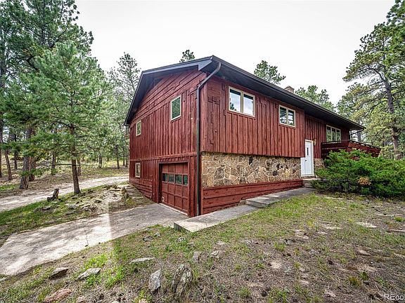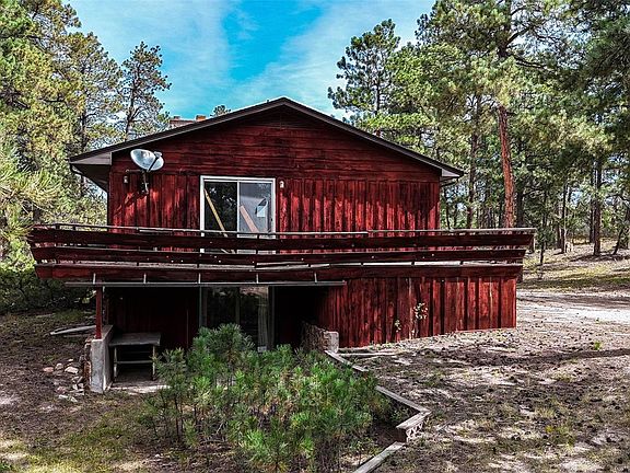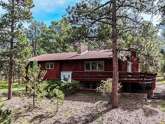 Nestled on over 5 private acres of Ponderosa Pines, this 1965 Bi-level home offers a blend of character, space, and rare opportunity to reimagine a property with your repairs and updating in a sought-after Black Forest location. Entering the home maintains its 1960’s flair featuring a beautiful stone wall wood burning fireplace in the spacious living room connecting to dining room and open kitchen. Down the hall, a traditional layout includes the 2 bedrooms, full bath and plus a primary bedroom and its own three-quarter bath. The walk-out lower level expands the living space with a family room featuring a second stone wood burning fireplace. Laundry is in large utility area with additional roughed in plumbing for a sink, Bedroom (with no closet), three-quarter bathroom and garage access. Step outside to enjoy Colorado living at its best— the property provides privacy, natural beauty, and frequent visits by the local wildlife. Conveniently located near trails, parks, the U.S. Air Force Academy, Garden of the Gods, and a wide variety of shopping, dining, and entertainment, this property offers the perfect balance of seclusion and accessibility. The elderly owner could no longer keep up maintaining the property that has been in the family for generations. He wanted everyone to know this home is a “Prize”. Most of windows are newer Pella Windows. Lower Level was in the process of being remodeled and was not all finished i.e. ceiling, flooring, drywall, etc. The Well has been inspected, well pump was replaced and documentation to be provided. Septic will be pumped and inspected according to El Paso County requirements. Roof has hail damage and in process of contacting insurance company to file claim. The home is being sold in As-Is condition. This is a great opportunity to own in this area of Black Forest so don't miss out! Information is not guaranteed and it is the Buyers responsibility to verify.