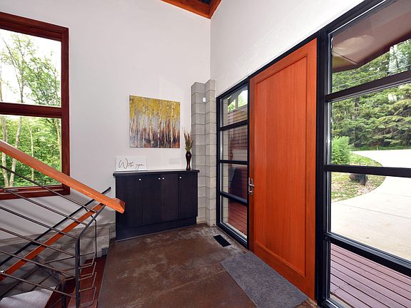 Looking for unique? Welcome to the Tree House! Amazing ultra-contempo w/ stunning views of a backyard wooded ravine, and abundant wildlife to enjoy from one of many decks. This home will WOW from the moment you step inside: striking custom open-riser staircase, vaulted ceilings, floor-to-ceiling windows, mahogany millwork and radiant-heat floors. Open-concept main living level, featuring sleek gourmet kitchen w/ SS appliances, granite counters, glass door uppers and large island, opens to an ample Living/Dining room w/ floor-to-ceiling natural wood-burning fireplace. Private Master Loft features spa-like bath w/ epic views into the treetops. Walkout lower level Flex space is an opportunity to add a 3rd BR; storage room is plumbed for a 3rd BA. One-of-a-kind property, this is a must-see!