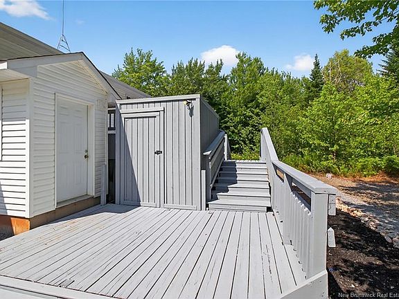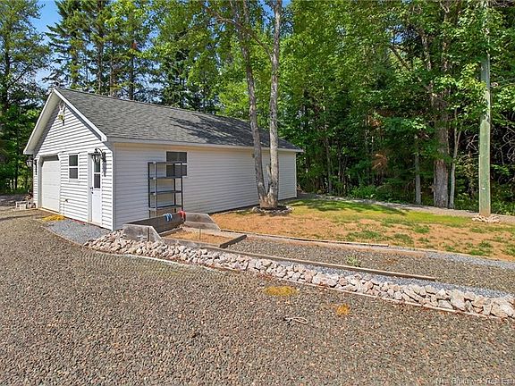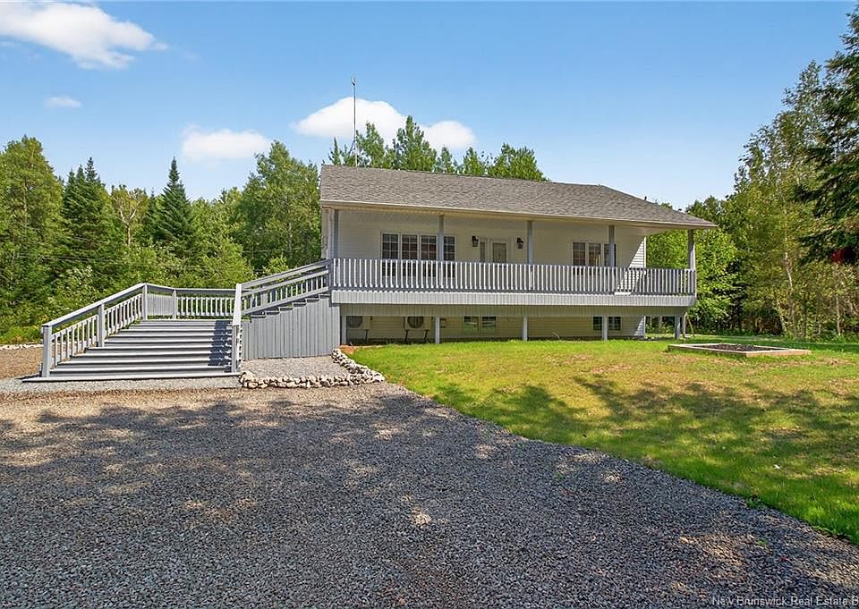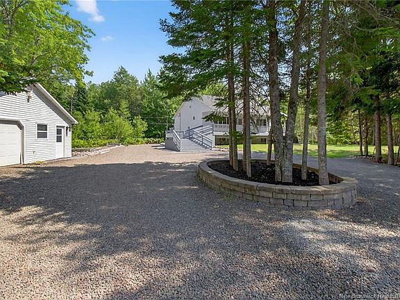 When Viewing This Property On Realtor.ca Please Click On The Multimedia or Virtual Tour Link For More Property Info. This well-maintained ranch-style home sits on a picturesque 2-acre property just 15 minutes from Moncton, offering rural tranquility with city convenience. With 2,240 sq. ft. of living space, it features a landscaped lot, circular driveway, and 24 x 30 detached garage. The main level offers an open-concept layout, an 8 x 40 covered deck with a striking 16 x 19 stairwell, spacious living room with propane fireplace, and bright kitchen with custom cabinetry. The primary bedroom includes a full ensuite, walk-in closet, and space for a nursery or office. Comfort is ensured with a 32,000 BTU mini-split (2022), electric baseboards, and propane fireplace. The lower level has two bedrooms, a full bath with shower, laundry with rear entrance, large rec room with built-in bookcase, two storage rooms, and matching heating systems including a propane stove with wood-burning charm. Hardwood and ceramic tile floors dominate, with minimal vinyl and no carpet. Exterior highlights include a back deck, tool shed, rock patio with outdoor wood stove, and decorative stonework. Recent upgrades include new roofs on the home and garage (2024). Surrounded by nature, this property blends quality craftsmanship, privacy, and thoughtful design.