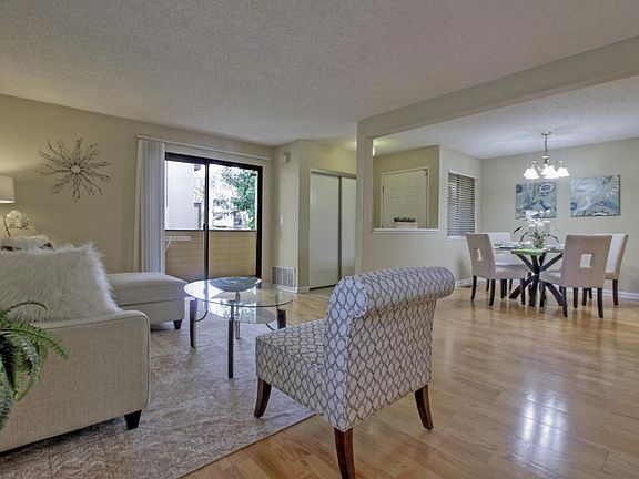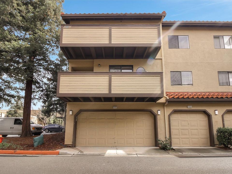 Rare spacious end unit 3bd/2ba with 2 car garages! Bright and airy with formal entry. Living room & family room combo with formal dining area. Beautifully remodeled granite open kitchen with tile entries. Both bathrooms remodeled a few years ago. Engineering floors throughout the unit. Master suites features walk-in closet. Two balconies. Situated in a quiet complex with low HOA fee. Partial view of community green belt from living room balcony. Plenty of guest parking in the complex. Close to highway 680 & 880, high tech companies, grocery shopping, walking distance to BART, etc. Award winning schools.
