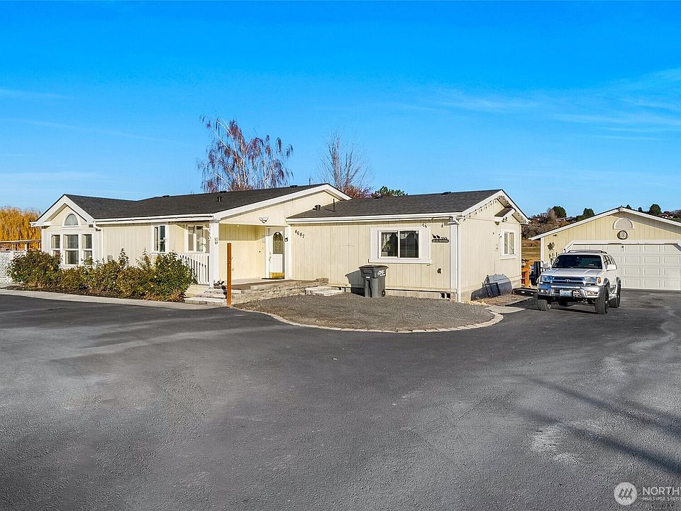 Discover this inviting 3-bedroom, 2-bath manufactured home nestled on just over an acre with a beautiful park-like setting. Inside, you’ll enjoy a spacious open kitchen with a large island, perfect for cooking and gathering. The thoughtful split-bedroom layout offers a generous primary suite on one side and two additional bedrooms on the other. All appliances are included for added convenience. Step outside to a landscaped backyard, circle driveway, and a 24' x 50' shop, ideal for hobbies, storage, or workspace needs. Property also includes a private well and septic system. A must-see opportunity for those seeking space, comfort, and functionality!