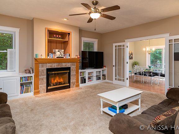 Nestled on a tranquil 2 wooded acres This 4 Bed 3 Ba home is an absolute private paradise. Cozy up to the gas fireplace in the Living room with custom built in entertainment center. French doors lead to kitchen with maple cabinets, built in pantry, center island, and loads of counter space. Upper level boasts master suite with an amazing master bath
