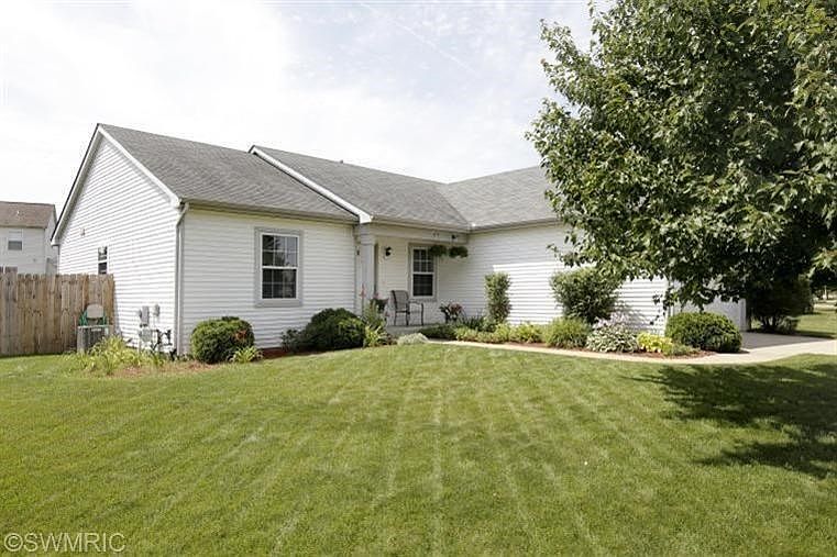 Ranch home in move-in condition. Angled kitchen overlooking great room, perfect for entertaining. Eating area with sliders overlooking fenced back yard. Main floor laundry/mud room off attached two-car garage. Master bedroom features master bath with walk-in closet. Exterior features landscaped yard, underground sprinkling and fenced back yard. All appliances included, as well as the TV and the snow blower! Great home - won't last long!
