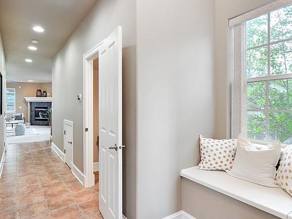 Built-in fireplaceLovely fenced-in backyardCentral loftVibrant greeneryUpstairs laundry roomGlass-enclosed step-in showerMature tree