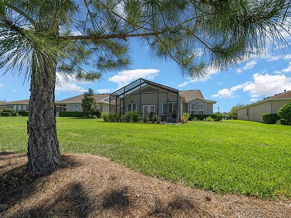 PRICE IMPROVED – 0 Down Financing Available! Beautifully maintained home located in the highly sought-after all-ages section of the resort-style community of Ocala Preserve. This upgraded residence offers the perfect blend of comfort, elegance, and modern efficiency. One of the standout features is the enormous 24.6’ x 19.6’ Florida Room addition, designed for entertaining and relaxation. The space includes a built-in bar with wine refrigerator, beverage refrigerator, and wine rack, plus a built-in buffet and rolling cart—all included with the home. A mini-split A/C system installed in 2024 ensures year-round comfort. The screened lanai spans the full width of the home and provides tranquil views of the open green space and dry retention area. A natural gas connection is ready for outdoor grilling. Inside, the home features a brand-new RUUD 4-ton, 18-SEER heat pump A/C system (installed November 2024) for efficient heating and cooling. The property is equipped with natural gas for the stove, dryer, and water heater. Elegant finishes include double crown molding, custom wood valances, Cheyenne-style arched panel doors, rounded corners, and 5¼" baseboards. The open living area includes a floor outlet for flexible furniture placement. The chef’s kitchen showcases the builder’s highest-level upgraded cabinetry with glaze, crown molding, and under-cabinet lighting, along with a granite composite sink, pull-out trash cabinet, and deep pot and pan drawers. Pendant lighting above the island adds a stylish touch. Both bathrooms feature fully tiled step-in showers, comfort-height vanities and toilets, and additional drawer storage. The primary bedroom suite includes a charming bump-out seating area. Flooring is tile throughout the main living areas and carpet in both bedrooms. The laundry room includes a utility sink, and all appliances (refrigerator, washer, and dryer) convey with the sale. Exterior features include well-maintained landscaping with decorative stone borders, a complete gutter and downspout system, and a transferable termite bond with bait stations for peace of mind. Ocala Preserve offers a true resort-style lifestyle with HOA services that include lawn care, landscaping, irrigation, fertilization, pest control, and high-speed fiber internet. Amenities include a clubhouse with on-site restaurant and executive chef, a luxury spa, state-of-the-art fitness center with classes, tennis, pickleball, bocce, and horseshoe courts, miles of walking and biking trails, and kayaks, canoes, and fishing dock access. Golf enthusiasts will enjoy the 24-hole hybrid course, with pay-as-you-play convenience and ever-changing layouts. Located just minutes from the World Equestrian Center, shopping, dining, and healthcare facilities, this home offers the best of Central Florida resort living with low-maintenance luxury and exceptional amenities