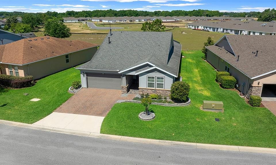 0 Down Financing Available! PRICE IMPROVED on this beautifully maintained home n the NON AGE RESTRICTED SECTON with GIGANTIC FLORIDA ROOM ADDITION 24.6’ x 19.6’ is located in the well sought-after resort-style community of Ocala Preserve, and offers both comfort and elegance with numerous high-end upgrades. One of the standout features in this designed with entertaining in mind. It includes a built-in bar with a wine refrigerator, beverage refrigerator, and wine rack, along with a built-in buffet and rolling cart—all of which will remain. A mini-split A/C system was installed in 2024 to ensure year-round comfort. Just beyond the Florida Room is a screened lanai that spans the full width of the home, providing tranquil views of the open dry retention area. A natural gas connection is already in place, making it perfect for outdoor grilling. Inside, the home features a brand-new RUUD 4-ton, 18 SEER heat pump A/C system installed in November 2024, delivering both electric air and heat. The home also benefits from natural gas for the water heater, stove, and dryer. Elegant finishes include double crown molding throughout, custom wood valances over the windows and sliding glass doors, Cheyenne-style arched panel interior doors, 5¼" baseboards, and softly rounded wall corners. The open living area includes a floor outlet for flexible furniture arrangements, and the kitchen is beautifully equipped with the builder’s highest level of upgraded cabinetry featuring glaze, crown molding, and under-cabinet lighting. Additional kitchen features include a 60/40 granite composite sink, pull-out trash cabinet, and heavy-duty pot and pan drawers. Pendant lighting over the kitchen island adds a stylish touch. Both bathrooms include step-in, fully tiled showers for easy access, comfort-height toilets and countertops, and additional drawer space in the master bath vanity. The master bedroom features a charming bump-out seating area. Flooring throughout the main living areas is tile, with carpet in both bedrooms. The laundry room is outfitted with a utility sink, and all appliances—including the refrigerator, washer, and dryer—are included! Outside, the home boasts well-maintained landscaping with color-coordinated stone in the beds, stone landscape borders extending along both sides of the home, and a complete gutter and downspout system. A termite bond with bait stations is also in place, offering added peace of mind. Discover the ease and elegance of resort-style living at Ocala Preserve, where the HOA takes care of all your lawn and landscape maintenance—including mowing, edging, trimming, fertilizing, pest treatments, and irrigation system upkeep (plus water for irrigation). Stay connected with high-speed fiber internet and enjoy full access to an incredible array of amenities Indulge in a lifestyle that includes an on-site restaurant with an executive chef, a private spa offering massages, facials, and mani-pedis, and a state-of-the-art fitness center with complimentary classes. Challenge yourself on tennis, pickleball, and bocce courts, or unwind at the horseshoe pits. Explore miles of scenic walking and biking trails, or take to the water with kayaks, canoes, and a fishing dock.Golf enthusiasts will love the innovative 24-hole hybrid course—no membership required, just pay as you play, with ever-changing play options to keep the game fresh. This is more than a home. It’s a daily escape to the Florida Lifestyle you have been looking for!