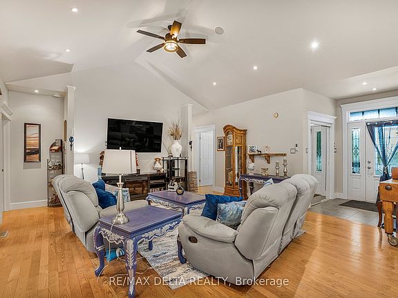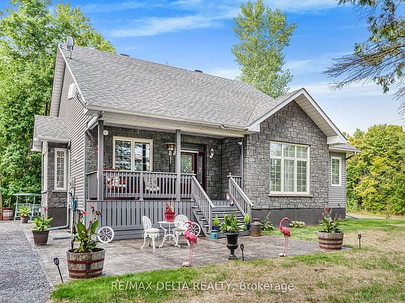 Welcome to 4688 Avonmore Rd . Escape to the country with this inviting Private 3+2 bedroom country chic bungalow nestled on 5.7 acres of landscaped, serene countryside with mature hardwoods in the forest and apple and cherry trees. Thoughtfully laid out for comfortable daily living and entertaining, with ample space for family, guests, and hobbies. As you enter the home, you are welcomed by an Open-concept Kitchen, living room, and dining room with vaulted ceilings. A bright sunroom with skylights that opens up to the large 30x15 deck, updated in 2023. Beautiful live-edge countertops, hardwood flooring add to the charm. Perfect for effortless daily living and entertaining. Large master bedroom with a full ensuite bathroom and walk-in closet. Two additional main-floor bedrooms and a full bath on the opposite side of the home. Make your way downstairs to a fully developed basement with a Large family room, full bathroom, laundry room, and two more bedrooms. Bonus Wine cellar for enthusiasts and a custom library. Landscaped backyard transitioning to wooded forest, offering privacy and natural beauty. Cozy firepit area and outdoor entertaining spaces. Detached 22' x 24' heated, insulated garage/workshop with generator hook-up, perfect for year-round projects. Two additional detached garages: each 20' x 10' with power (one roughed-in for water), providing versatile storage and workshop space. One hour commute to Montreal and Ottawa, direct access to highway 401. 5 minutes to St Lawrence Seaway, recreation trails, snowmobiling, hunting, and convenience amenities. Do not miss out. This home is truly unlike any other