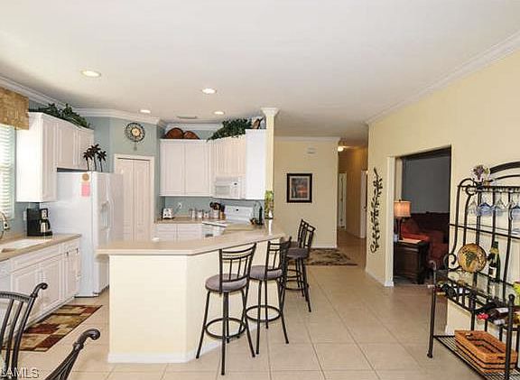 The Yorkshire floor plan with den is 1630 sq ft of open, bright living. This villa has an extended lanai looking onto the golf course #6 fairway/green. Great neutral colors, very clean, tile through out the living area, move right in, maintenance free living in a golf course community with low fees. Westminster Golf Community is minutes from Jetblue stadium, Hammand, Century Link stadium, FGCU, Gulf Coast Towne Center, dining, shopping and all the fun of Fort Myers Florida. Golf membership is not mandatory.