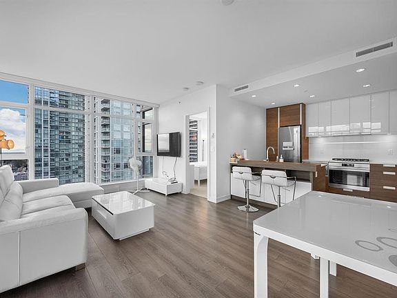 This modern 2bed2bath open concept layout has 2 sides of wall-to-wall floor-to-ceiling glass walls and access to the covered view balcony maximizes the views and lights all day. The functional floor plan w/ modern features including wood veneer & opaque glass kitchen cabinets, stainless steel appliances, gas stove & under-cabinet lighting, full sized washer/dryer. "The Station Square I" sits on center of South Burnaby, minutes to skytrain, restaurants and the pulse of Metortown. Amenities include gym, meeting room, guest suites, and concierge and premier amenities. Smoking pets are not permitted, Minimum one year fixed-term.