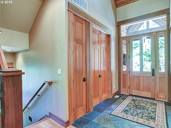 This gorgeous lodge-like custom built home is filled with high end exquisite detailing including reclaimed wood beams, hand wrought iron railings, heated slate floor and travertine. Enjoy the gourmet kitchen and open family area with adjacent dining room. Located in an idyllic setting, the outdoor covered deck space, is peaceful, private and perfect for entertaining. This multilevel home has room for everyone and is a special home.
