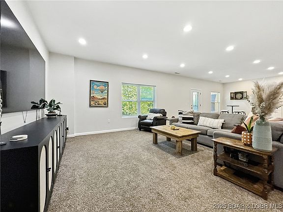 Seller offering potential credits towards interest rate reductions. Ask for more details! Main-level living, an open floor plan, vaulted ceilings, and a bright kitchen, dining, and living area. The large primary suite includes a walk-in closet and an ensuite bath, along with a Jack 'n Jill style laundry room. 2 more bedrooms and a full bath complete the main level. The owners have loved the functional layout and seasonal lake view this home provides. The finished walkout lower level is designed for fun and function with 9-foot ceilings, a large family/rec room, a full bath, and two additional bedrooms (one non-conforming), perfect for an office, gym, or flex space. Plumbing is already in place for a future wet bar, giving you the chance to create the ultimate entertainment hub. Step outside to a deck overlooking or a shaded patio below. An attached 2-car garage plus a storage building offer plenty of space for tools, mower, or lake toys. A new roof in 2020 adds peace of mind, while the vinyl and stone exterior keeps maintenance simple. All of this in a fantastic in-town location, just minutes from all the shopping, dining, and everything Lake of the Ozarks has to offer!