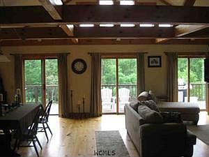 Bright, open floor plan in a beautiful setting. Vaulted beam ceilings, MANY recent improvements in and out. Full, finished walkout basement with TONS of extra living space (NOT included in square footage). Inground pool, beautiful gardens and enormous deck. HUGE heated ,detached workshop and garage wth woodstove.