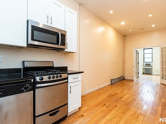 Two spacious king-size bedrooms await. Nestled within this recently renovated floor-through apartment, you'll find a shared bathroom alongside a combined kitchen and living room area. The kitchen boasts sleek stainless steel appliances, while the living room offers ample space for a three-seater sofa and more. Each bedroom comes with generous closet space, ensuring optimal storage for every resident.