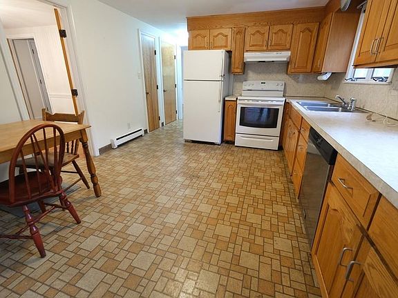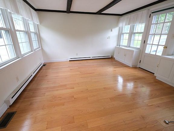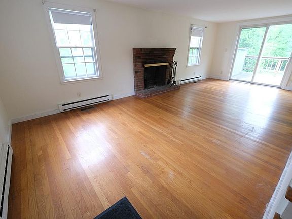 Deleaded spacious 1650 sq.ft. 3 bedroom/1.5 bathroom single family house in Lexington. 1st level: Living room with wood fireplace and glass sliding doors to huge deck. Dining room. Eat in kitchen with dishwasher and electric stove. Additional family/office room. Half bathroom. 2nd level: Master bedroom with 2 closets. 2 additional good size bedrooms and full bathroom. Hardwood floors. Laundry and plenty of space for storage in the basement. 1 car garage and plenty off street parking. Large yard abutting conservation land. Easy access to I-95, Route 2 and Burlington Mall. Water, landscaping and snow removal included. Owner will pay $1000 per year towards the oil bill. Pet friendly, but for some pets there might be an additional deposit. Available Now.