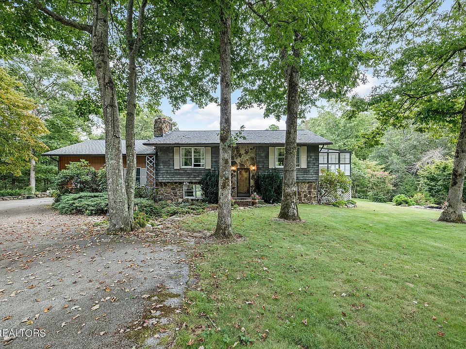 Take a look at this very private home on over 33 park-like acres with a large pond and all season creek! This property is full of that Tennessee country charm with a peaceful setting that you're looking for. This home is a must see! Ready for your horses, chickens, mini-farm, hunting retreat, or even build hiking trails through the extensive wooded forest. As you step inside, you'll be greeted by the warmth of hardwood flooring that flows up the stairs, the living room with a stone wood burning fireplace boasts a spacious layout that opens seamlessly into the dining room that looks into the large sunroom (an additional 240 square feet) with a realistic electric fireplace that adds a touch of character to the space. This is sure to become a favorite area of the home with that view of the beautifully landscaped yard and surrounding forest! The kitchen features nice cabinetry with ample counter space, a window over the sink to look out into your beautiful yard, a good-sized pantry, and nighttime lighting. Appliances include range, dishwasher, and refrigerator. The primary bedroom on the main floor is a true retreat, complete with walk-in closet, an attached generous sized Jacuzzi sunroom space (not included in home square footage) and full bath with ceramic tiled walls that features a sink vanity, a tub/shower combo with a shelf extension to allow for more space. Washer and dryer stay with the home. Downstairs are two more bedrooms with closets, a full bath, and a second living room or recreation room with a stone wood burning fireplace, built in bookcases and a walk out into the patio and backyard. The oversized garage provides 2 car parking with room for more, workbench space, storage, plus excellent overhead storage. Outside the ''yard'' is approximately 10 acres with the remaining 23+ acres being wooded. (Could possibly be put into Greenbelt for tax purposes) In addition to the main house, you'll find a two-stall barn with electric, a workshop area, and lots of room for storage. The wooded area of the property has trails that the owners have used in the past for horseback riding and walking, this area backs on to the forest area of Meadow Park. The large pond is nearly an acre and stocked with fish, and there are also two ornamental small garden ponds. (Because of the resident birds, frogs and dragonflies, the seller says she has no mosquitoes.) The garden areas and deck and patio areas provide the perfect setting to enjoy outdoor gatherings and entertainment with friends and family during the seasons. Plus, there are several great garden areas for raising vegetables and flowers. (Yes, you can have chickens, horses, ducks...) The practical elements of this home haven't been overlooked, the roofing with gutter guards was installed about 3 years old, the HVAC is approximately 10 years old, the whole house fan brings in that cool evening and early morning fresh air, and, there's great well water. Utilities average about $140 a month all year. This is a nature lovers dream home. Call to schedule a viewing today and make this oasis of peacefulness, beauty, and convenience your very own Tennessee home.